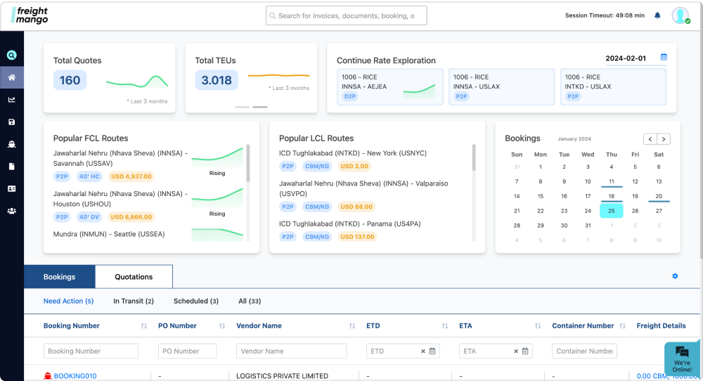 Reporting Dashboard is your central hub for quick access to popular trade lane information and historical freight rates. Our platform offers a user-friendly experience, allowing you to make informed decisions effortlessly. Stay ahead with real-time insights at your fingertips, all in one place.